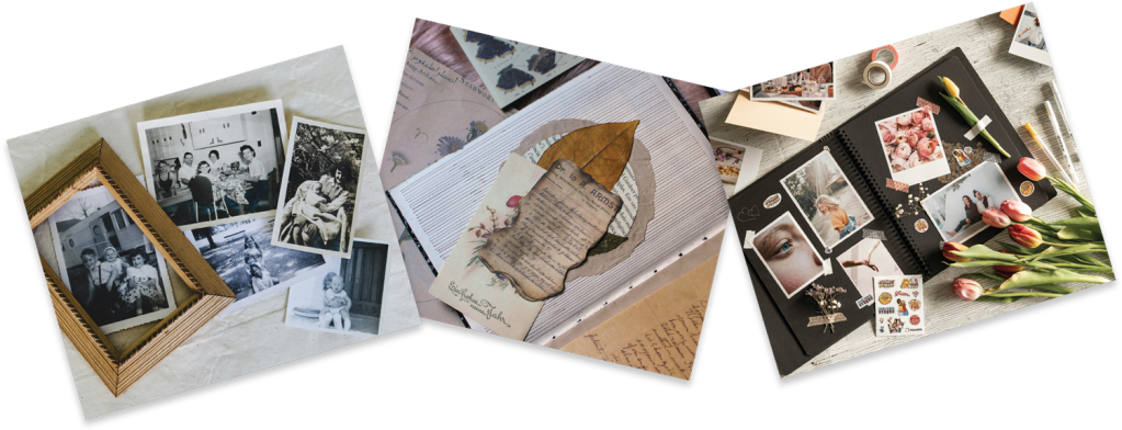 – Visual Memoirs / Special Scrapbooking of precious memories/ mementos and documents. Preservation of personal/family legacy materials and storytelling.